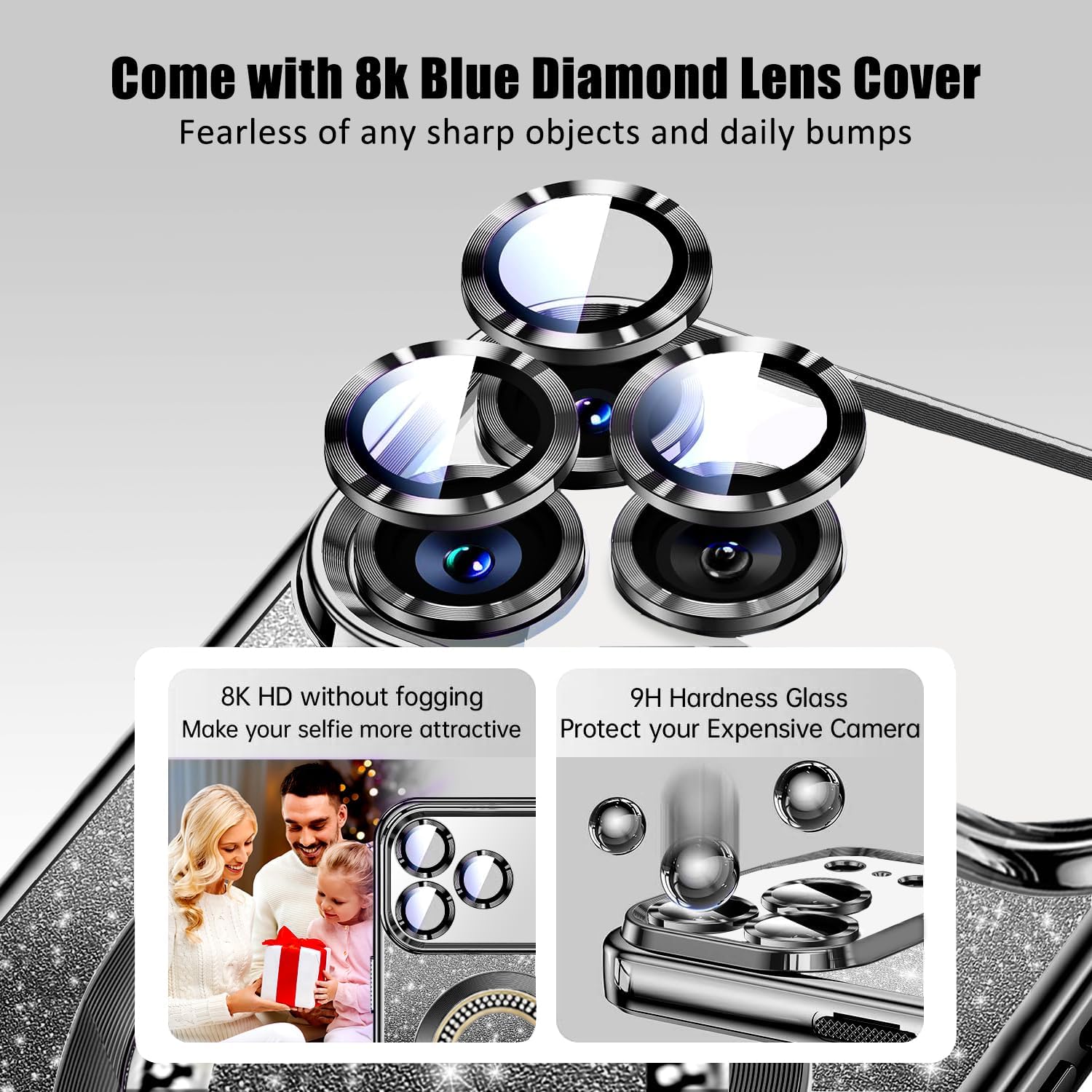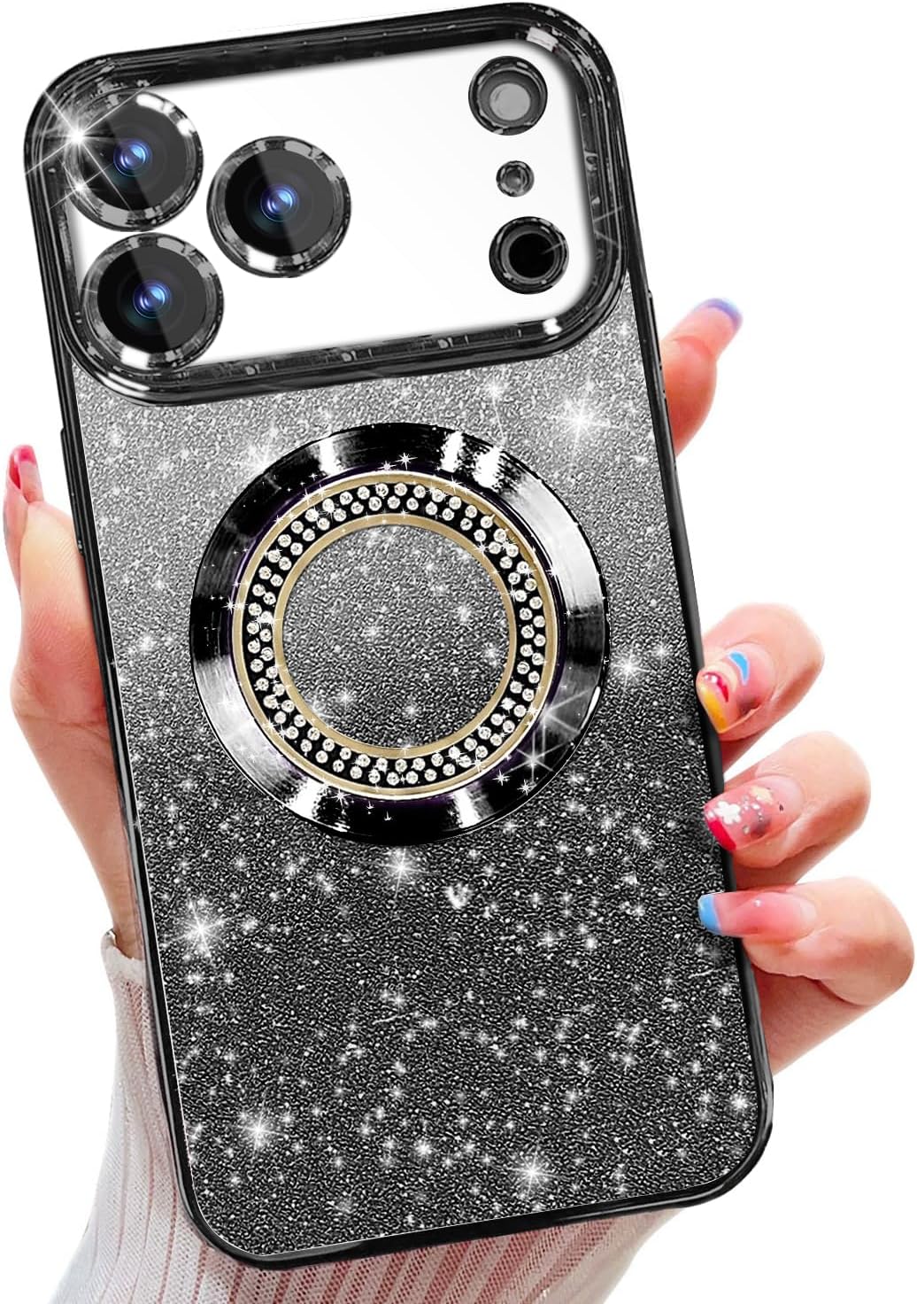 【Fashionable and Magnetic Strips Design】Luxury electroplate plating edge,come with artificial rhinestone diamond on the back,makes your mobile phone special,Lovely,Fashion,Cool,and the built-in magnetic ring can strengthen the magnetic connection to be compatible with high-speed wireless charging.