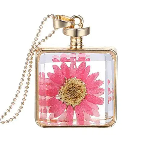 Express your sentiments with this Wildflower necklace in the glass terrarium.. ..Nothing says ' You make my heart bloom! ' more than this necklace which shows a big Coral flower blooming happily ..