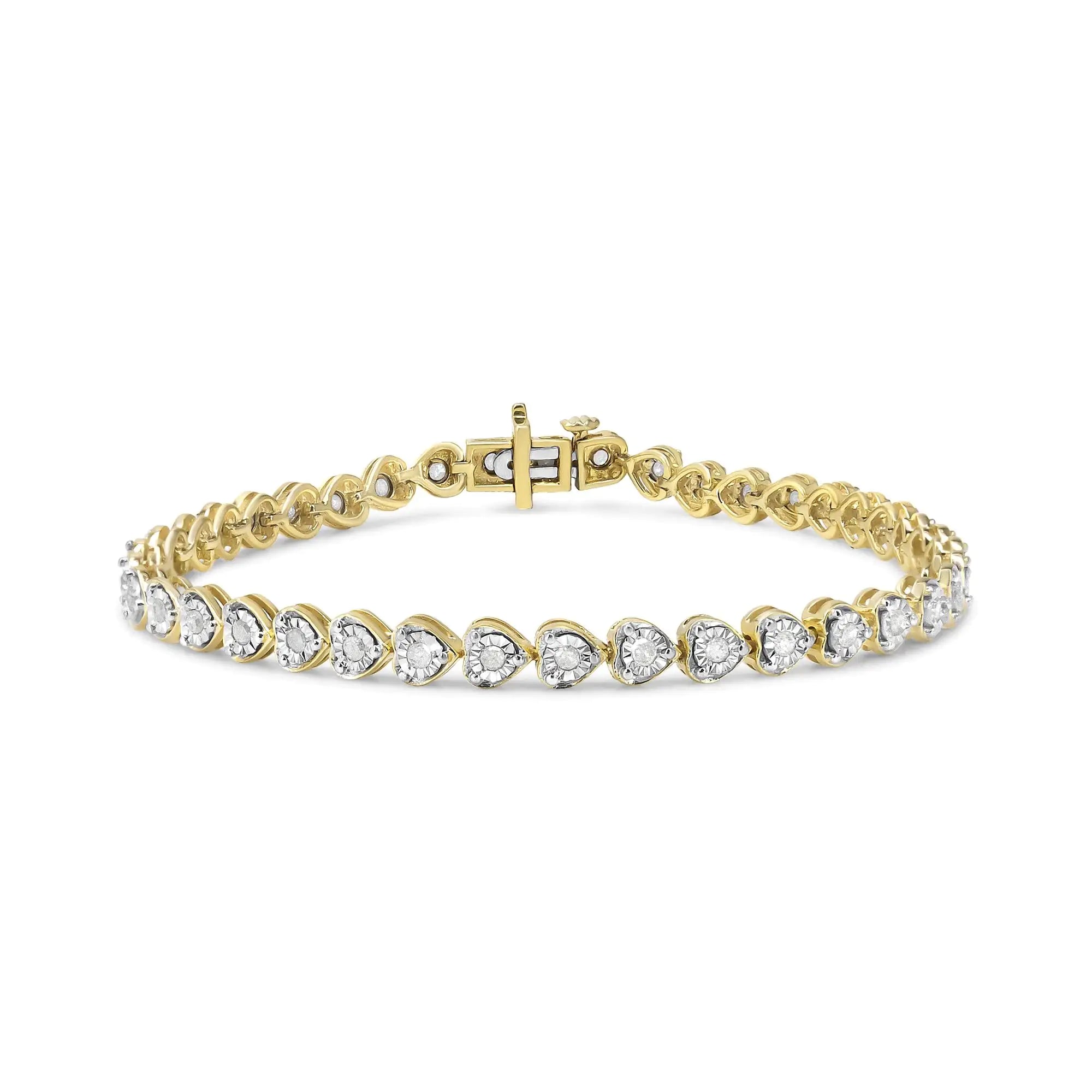.925 Sterling Silver 1.0 Cttw Miracle Set Diamond Heart-Link 7" Tennis Bracelet (I-J Color, I2-I3 Clarity)
